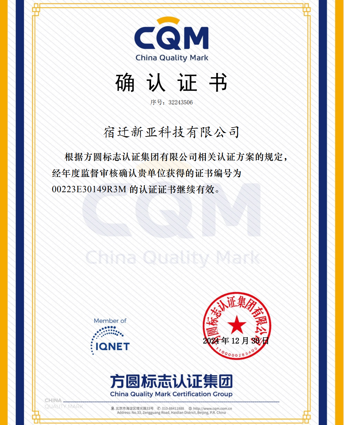 選擇新亞--品質(zhì)保證